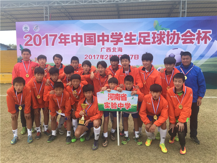 2月16日,“2017中国中学生足球协会杯”决赛在广西北海市海浪足球基地打响。上午率先开打的初中组的决赛中,河南省实验中学初中组2:1逆转北京回民中学,摘得全国大赛桂冠。下午高中甲组的比赛,河南省实验中学3:0完胜厦门二中,再夺一冠,河南省实验中学夺得双冠!这也是中学生协会杯历史上首支“双冠王”球队。