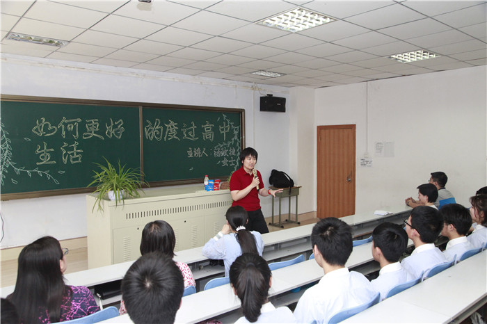 汤女士结合自己的经历,以幽默风趣的语言,为现场的学生、教师和家长代表献上了一场主题为“如何更好地度过高中生活”的精彩演讲。汤女士主要表达了以下几个主要观点:一是不要给人生做减法。你永远不知道你所做的这件事会对下一件事产生什么影响。二是不要小看“临时抱佛脚”。你付出的每一分努力都有可能为你成功簿上的一员大将。三是世界上最差劲的事情就是放弃。很多事情只有坚持下去,你才知道自己是否能够成功。四是要培养自己的体育精神。在这个世界上,我们最廉价的付出就是体育锻炼,它是一种长线投资,也是一种长期回报,强壮的身体是繁重的学业和健康的心理之间的一种平衡。