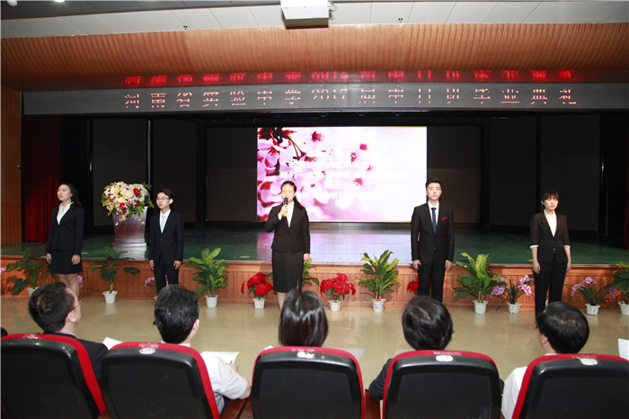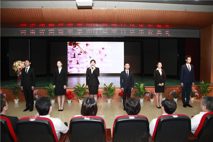 毕业典礼上,关煜平处长按照教育部及教育厅相关文件精神,对毕业生做了“平安留学”的培训指导,号召毕业生平安留学、健康留学、文明留学、成功留学。关处长希望毕业生出国后能够铭记师恩、刻苦学习,展现中原学子形象,她还用日语为毕业生送上美好的祝愿。马玉霞校长为毕业生颁发毕业证,国际部主任牛炳华宣读了学校的表彰决定,校党委书记阎俊合、副校长王献甫、杨东升等上台为优秀毕业生颁奖。
