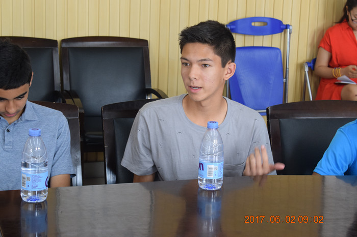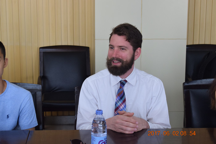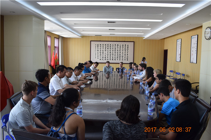 6月2号上午八点半,副校长王献甫、殷红参加了我校在10楼会议室举行的欢迎会,双方就两所学校的合作友谊以及两国的传统文化进行了愉快的交流。卡瑞中学汉语班的几位同学还用汉语表达了对中国文化的兴趣和热爱。随后,两校互换礼物并合影留念。