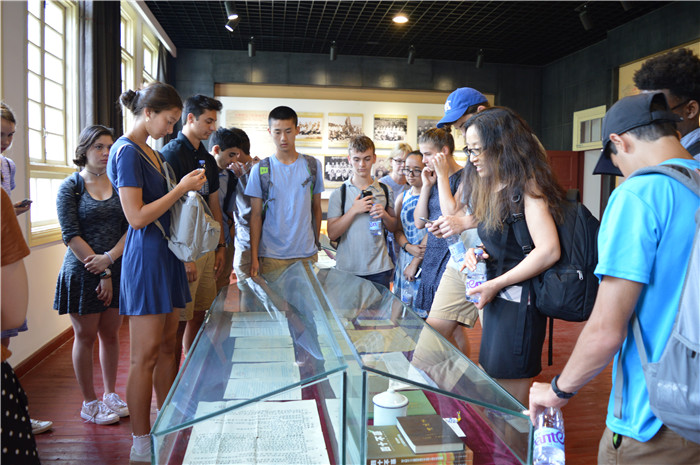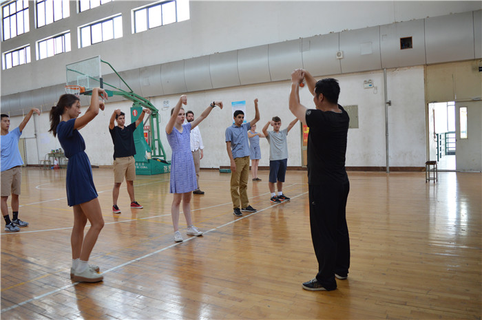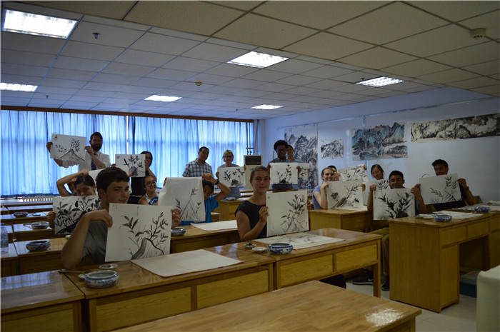 欢迎会后,卡瑞中学师生一行参观了我校的校史馆和艺体活动中心。校史馆里,他们对我校六十年的发展历史和“和谐致美,人人发展”的办学理念啧啧称道。在艺体活动中心,他们共同体验了中国国画和中国功夫的魅力。看似简单的水墨画却蕴藏着中国人的民族智慧和哲学思考。在我校美术老师的指导下,他们还体验了国画的创作技巧。接下来,一场别开生面的中华武术课更是让美国学生的兴奋点达到了峰值。“勾手”、“螺旋腿”、“空翻”这些招式都让美国学生瞠目结舌,叹为观止。