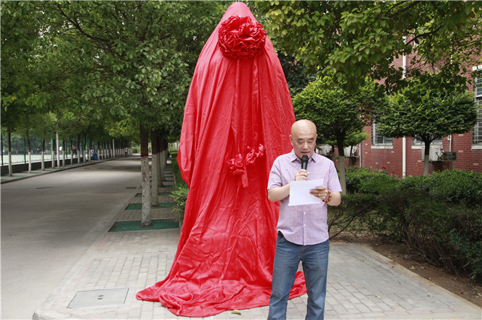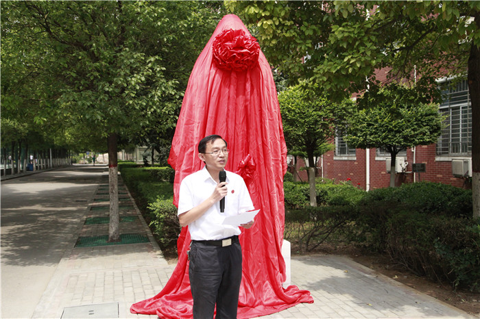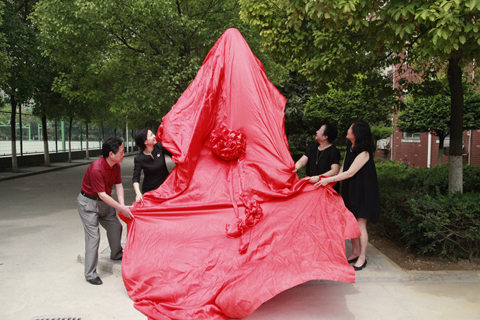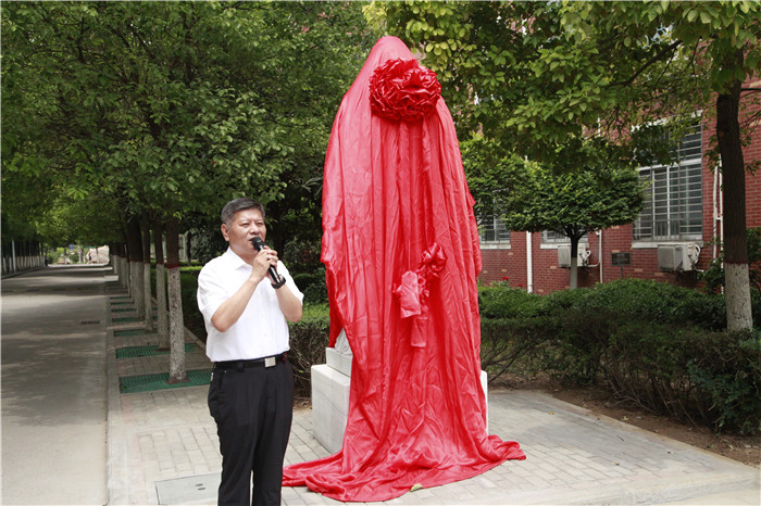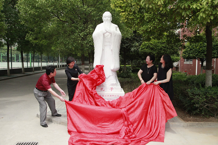 今年是我校建校六十周年。近日,由1968—1981年我校篮球队、田径队和击剑队的校友捐赠的一尊近三米高的孔子雕像被树立在学校香樟路与白荆路口。6月18日上午,学校举行了一场简约的揭幕仪式,校长马玉霞、校党委书记阎俊合、副校长王献甫、杨东升、殷红和进行此次捐赠活动的当年校运动队的教练员代表侯少林以及队员代表共同参加了揭幕仪式。