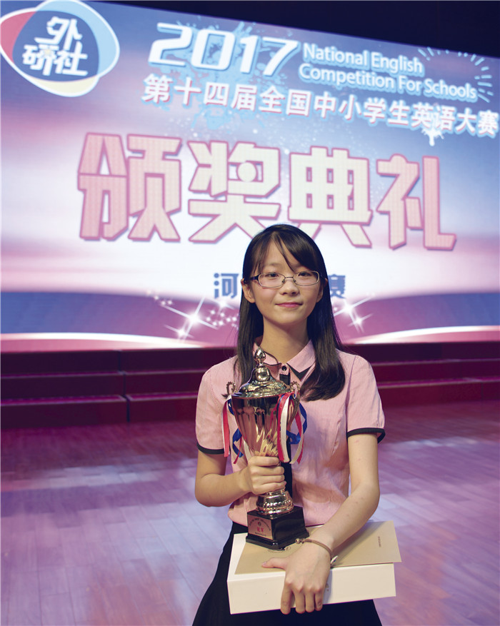 就我个人而言,父母很注重对我外语素质的培养,支持我买外文原版书籍,花时间研究外文电影。父母和很多老师从小就在这个方面对我加以培养,从而成就了现在的我,感谢他们。老师们,尤其是我的英语老师侯瑞岩老师和班主任聂聚银老师,从初赛一路走来,从修改稿子到自我提升,都给了我很多理解和支持,非常感谢他们!
