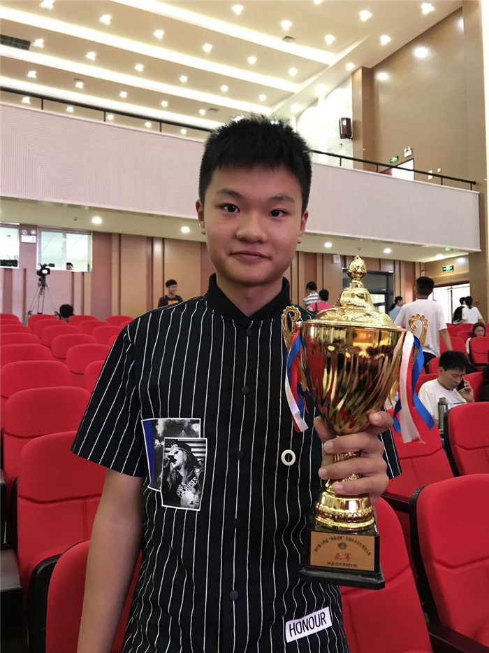比赛中,我校陈泓霏同学带病上场,一路过关斩将,在6月30日下午的冠亚军PK赛中胜出,斩获冠军;初中组比赛同步进行,翟亦飞同学获得亚军。