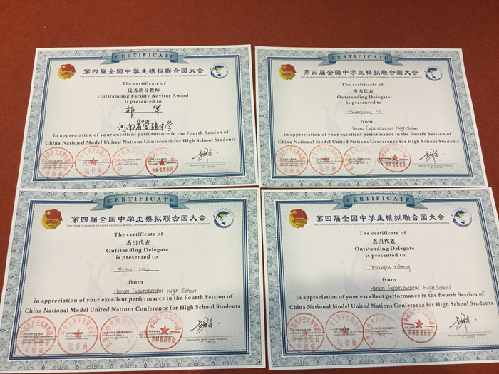本次,我校中学生模拟联合国社团获得“杰出代表团”和“最佳指导教师”奖,是该社团继去年在石家庄举办的第三届全国模拟联合国大会获得“最佳组织奖”和5个“杰出代表奖”之后取得的又一佳绩。
