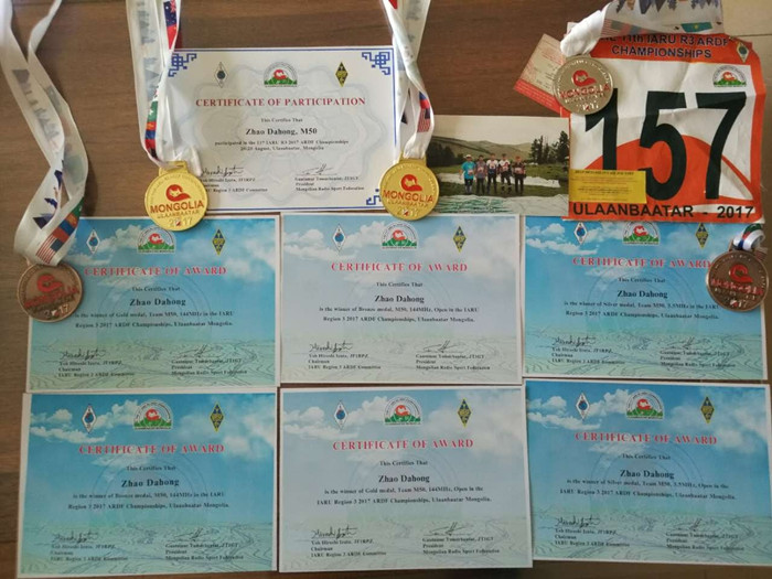 8月20日至25日,我校教师赵达宏代表国家队参加在蒙古国举行的2017年世界无线电三区及亚洲锦标赛,勇夺两块团体赛金牌并获得144MHz项目正式组、公开组两块个人铜牌和两块团体银牌。
