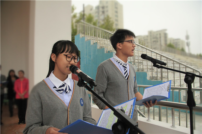 校学生会主席左辰玺和校学生会秘书长董子凌两位同学主持典礼仪式并带领同学们宣誓