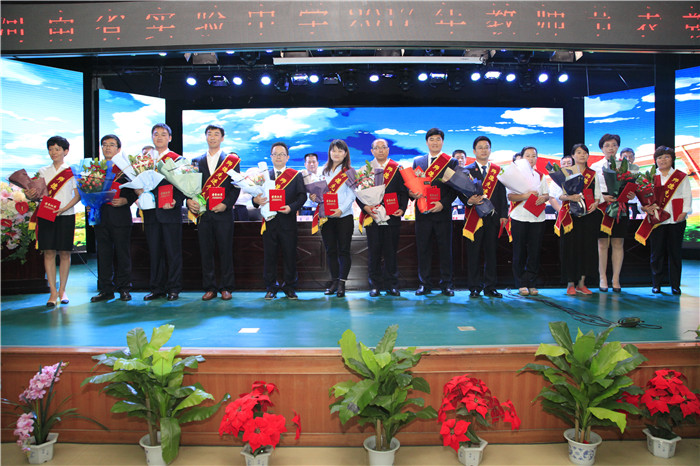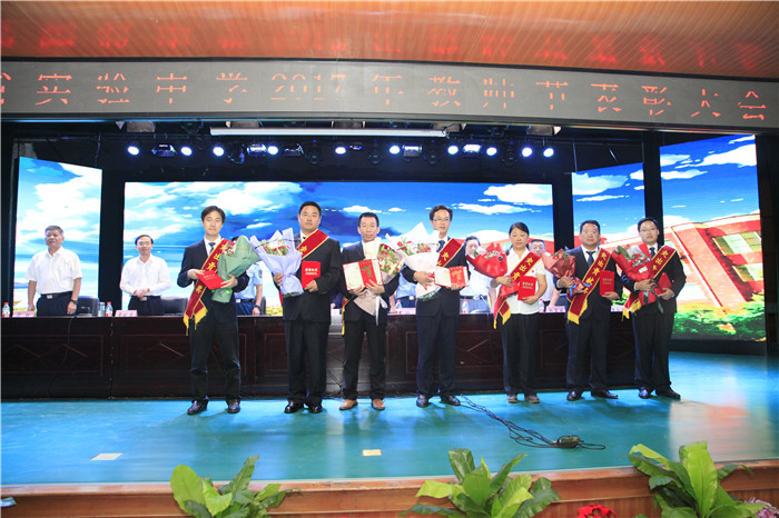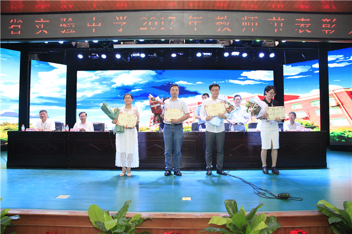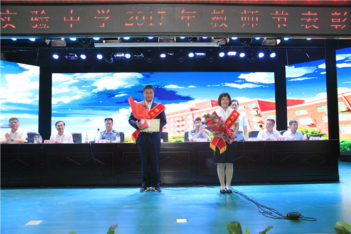表彰大会由校党委书记阎俊合主持,副校长王献甫、杨东升、殷红分别宣读了学校对2016—2017学年教育、教学、行政以及后勤服务岗位涌现出的先进典型进行表彰的决定。今年的表彰类型除了“优秀教师”“优秀班主任”“师德先进个人”“师德标兵”“突出贡献集体”以及“优质服务奖”等荣誉奖项之外,还专门增设了“特别贡献奖”,对上学年为学校做出重大贡献的团队和个人进行特别表彰。空军招飞局连毅书记现场宣读了空军表彰“空军青少年航空学校优秀教师”的决定,我校航空班庞海燕、吴琨 、张志红、刘艳梅四位教师获此殊荣。