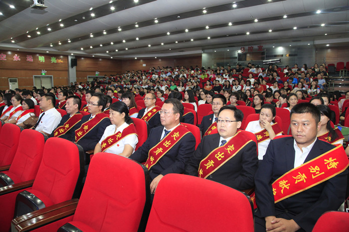 9月8日下午,我校在艺体中心报告厅隆重举行2017年教师节总表彰大会。全体教职员工齐聚一堂,共同庆祝第33个教师节,共同分享一年的奋斗成果,共同见证属于自己的荣耀时刻。空军济南基地政治工作部谢宏副主任,空军招飞局济南选拔中心连毅书记专程来到现场为获得“空军青少年航空学校优秀教师”的教师颁奖并宣读空军对我校的贺词。