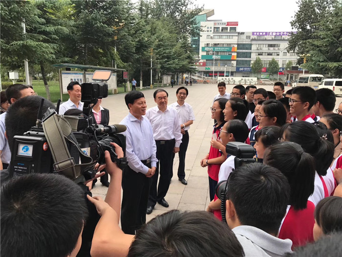 2017年9月19日上午,新学期开学伊始,中共河南省委书记、省人大常委会主任谢伏瞻到我校看望慰问学校教师,调研、指导基础教育工作。一同前来的还有中国科学院院士、清华大学副校长、我校名誉校长施一公,以及省委、省政府、教育厅的有关领导。谢书记的到来,让每一位实验人倍受鼓舞、如沐春风。