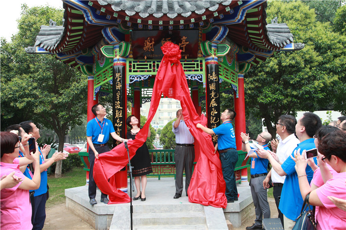 马玉霞校长和施一公校友共同为谢师亭揭幕