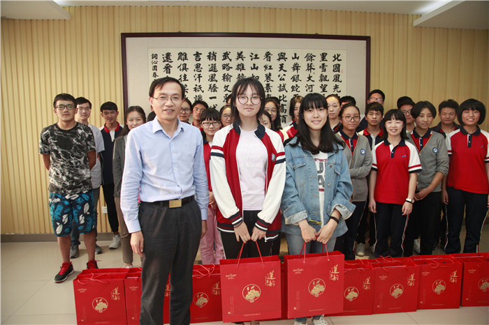 会后,师生合影留念。副校长王献甫代表学校为同学们送上精心准备的节日礼品。座谈会在喜悦、祥和的气氛中圆满结束。