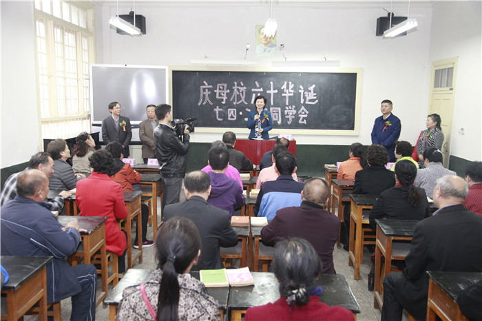 10月15日(周日),省实验校史馆(原老教楼)内外热闹非凡,我校67届初二一班和74届二班、四班的校友们时隔多年重聚母校。