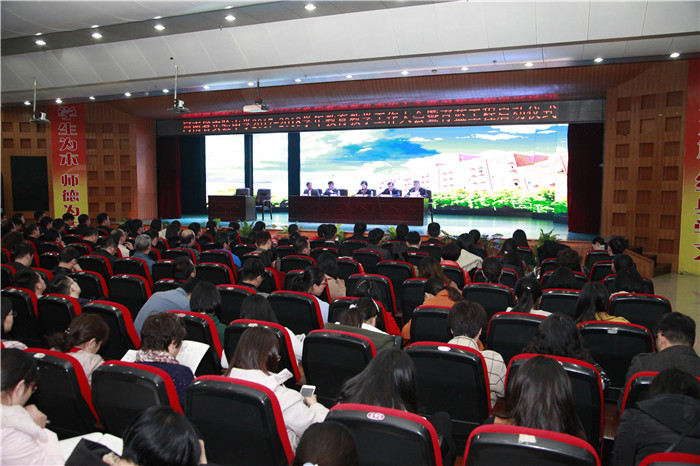 2017年11月16日下午,我校在艺体中心三楼报告厅隆重召开2017-2018年度教育教学工作大会并举行了“青蓝工程”启动仪式。全体教职员齐聚一堂,共商发展大计。