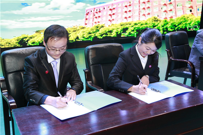 学科教学师徒代表以及班级管理师徒代表上台签订指导协议