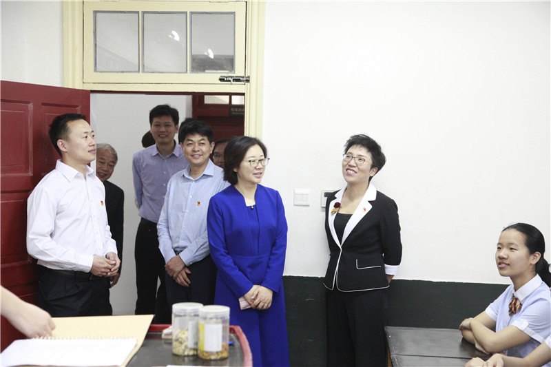 王忠梅一行走进省实验中学,在团支部活动室观看了开放团课和团支部特色活动,并兴致勃勃地参观了校史馆,详细了解学校的办学历史、办学成果和教育理念,随后在“强五广场”观看了校园社团风采展示。我校机器人社团、汉服社团、麻吉音乐社团、模拟联合国社团、棒球社团等三十多个社团以独具特色的方式展示着自己的风采。同学们用青春语言畅谈学习习近平新时代中国特色社会主义思想和党的十九大精神体会,通过音乐表演、经典诵读等丰富多彩的形式展现活力与创造力,整个实验校园洋溢着青春的气息,在场的每一个人都深受感染。