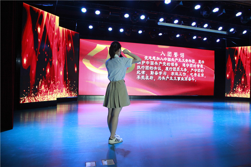 活动现场,我校学生自编自演了“不忘初心”情景诗朗诵,再现了五四运动、新中国成立、改革开放、新时代等重要历史时刻,全体团员青年重温了入团誓词,共同合唱《光荣啊!中国共青团》,嘹亮的歌声激起了全场的青春共鸣、建功热情。