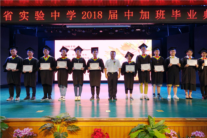 6月19日上午,我校2018届中加班毕业典礼在艺体活动中心报告厅隆重举行。我校校长马玉霞,副校长王献甫、杨东升、殷红等领导,加方校长辛普森先生、副校长黛比佩林女士,派特森教育集团总经理刘民民出席了典礼仪式。中加班中外方全体教师、近170名毕业生及学生家长共同见证了这一重要时刻。