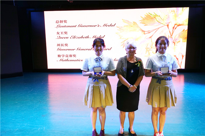 加方副校长黛比佩林为高二张丹凝和冯怡伟两名同学颁发加拿大总督奖