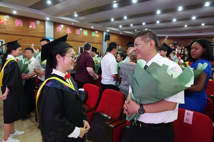 毕业典礼是一场骄傲的盛会,因为成绩斐然;毕业典礼也是一场哀伤的盛会,因为离别在即。这场离别中有学校、老师、学生,也有家长,毕业生用《You raise me up》献歌给养育他们的父母,18年的恩情在这一刻牵动了心中的感动。正是这里人和事和这永远的故乡教会了他们什么是正直善良什么是花开远方,让他们不忘祖国,成为栋梁。