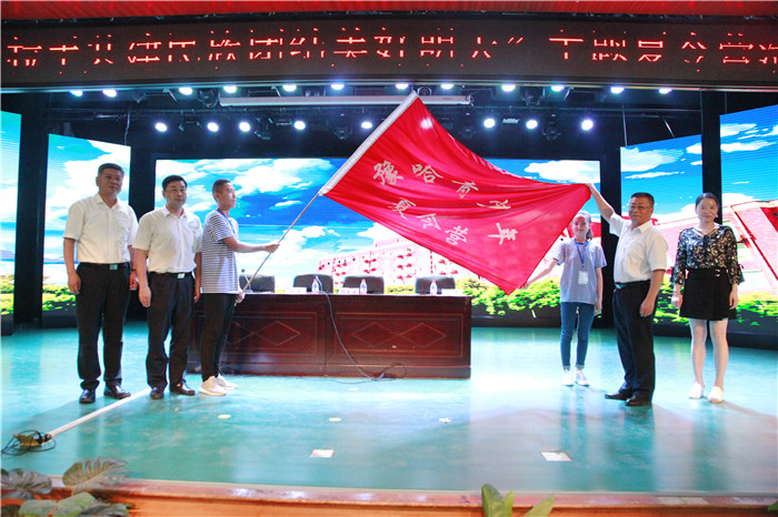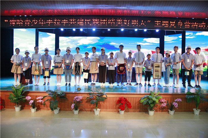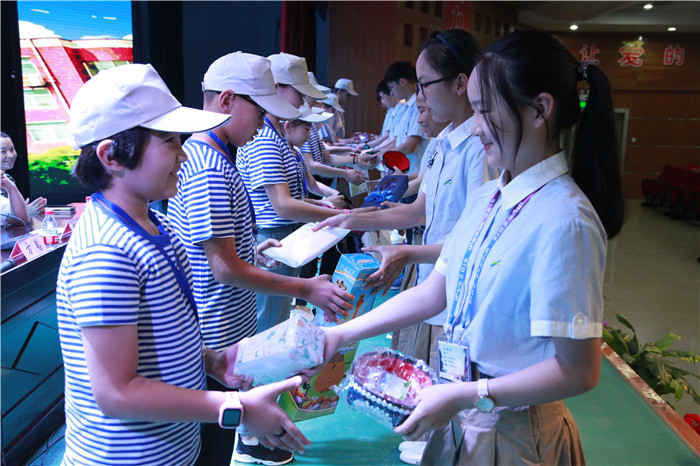 在现场舒缓美妙的音乐声中,双方学生代表上台互赠礼物,杨东升副校长为营员队长授旗。最后,大家合影留念,共同记录下这美好、难忘的时刻。