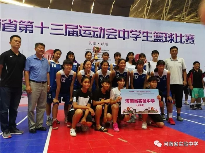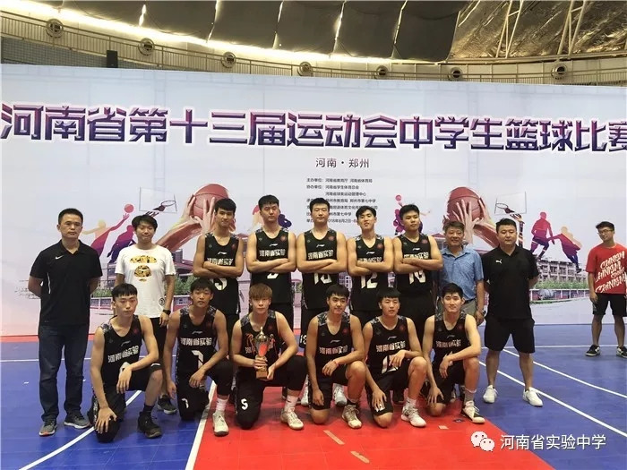 2018年8月6日,我校篮球队在主教练杜洪林、赵卓、郭明亮、陈彦升四位老师带领下,勇夺河南省第十三届运动会中学生组男女篮双冠军。