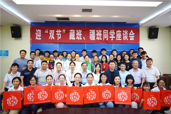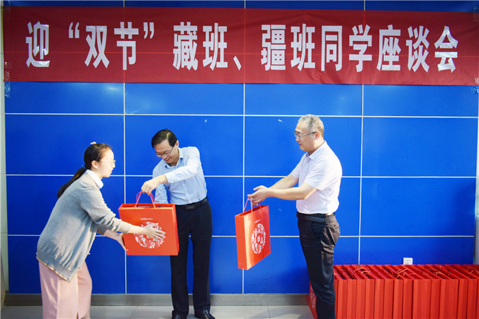 中秋、国庆“双节”将至,9月21日下午,按照惯例,我校在10楼会议室召开“迎双节”藏班、疆班学生座谈会。38名从西藏、新疆来我校就读的同学受邀和学校领导、老师欢聚一堂,共贺中秋、共迎国庆、共话美好未来。副校长王献甫,教务处、学生处、办公室相关处室的中层干部,高中各年级长、相关班主任以及公寓办等部门的老师参加了会议。
