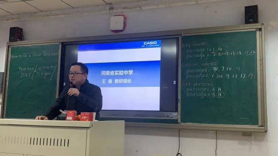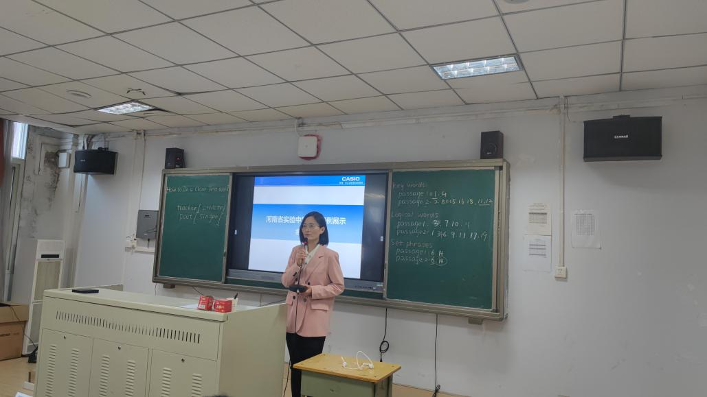 随后,郑州市教研室黄利军老师对余彦洁老师的展示课做出了高度评价。黄老师谈到,余老师的课堂生动有趣,让人意犹未尽,环节设计由浅入深,层层递进,注重培养学生的文化意识和批判性思维,这符合新时代新课程背景下的英语教学要求,为大家做了良好的示范。黄老师表示,省实验中学英语在学校领导的支持下,在教研组长王鑫老师带领下,整个英语组老师们团结务实,英语学科在郑州市遥遥领先,起到了很好的带头作用,希望各院校之间加强交流合作,共同推动英语学科教学创新发展。