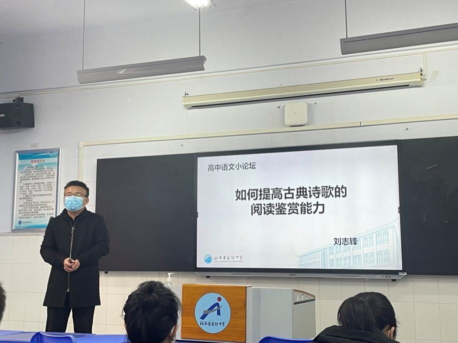 2021年12月6日下午,河南省实验中学高中语文组在2111教室开展了第二期学科小论坛讲座,本期主讲人为高中语文组刘志峰老师。刘志峰老师,中学一级教师,曾获郑州市优质课一等奖。