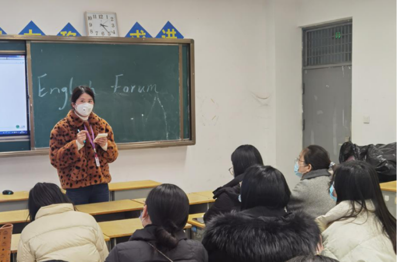 课堂结束后,各位听课老师齐聚214研讨室畅所欲言,各抒己见,充分肯定了本节课的亮点,也指出今后课堂上需要进行改进的地方。王晓静老师指出,周老师教学环节完整,整个过程比较清晰。对于一名新老师来说,在短时间内第一次上公开课就能上到这种程度,说明在背后付出了很多努力和汗水。她对周老师给予了充分的鼓励和肯定,希望她能够继续努力,在磨练中尽快成长进步;葛红静老师则提出了本节课的两个亮点:第一点,本节课设计思路清晰,作为典型的阅读课,能够融入听说读写四个环节以及多样化的阅读题型,可以看出本节课脉络清晰,使学生对文章内容一目了然。第二点,整节课的教学设计层层推进。同时,她也提出了一些建议:板书以及字体方面可以再加以改善;周丹老师认为周老师的这节课教学环节完整:读前活动,周老师以冬奥会的主题曲导入,引入话题,激发学生对运动做出思考,从而引出本节课内容。读中活动,设置的问题由浅到深,层层推进。读后活动,她引领学生以小组讨论调查的形式选出本组的运动之星,让学生充分输出,从而培养了学生自己分析、判断和理性表达的思维品质。