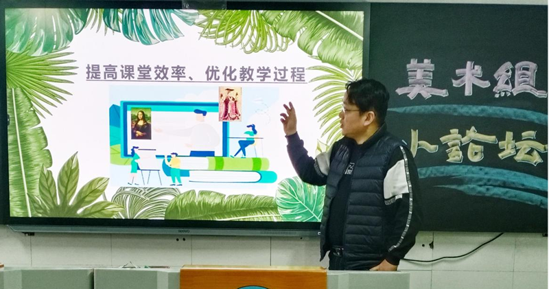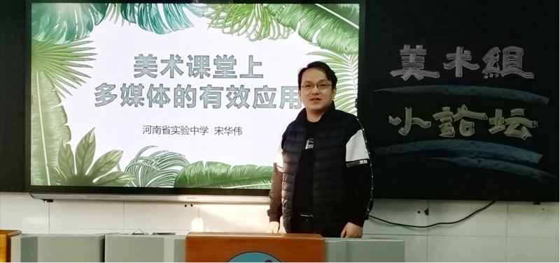 2021年12月16日,美术组所有教师齐聚一堂,进行了小论坛活动。本次论坛主要由高中美术备课组组长、河南省基础教育教学高中美术学科中心组成员、国家级优秀辅导教师宋华伟主讲。宋老师就“美术课堂上多媒体的有效应用”课堂实践的个人心得和研究成果进行了汇报和交流。