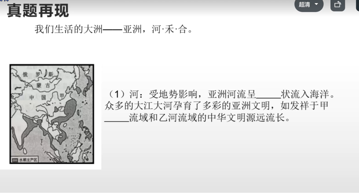 第二步,让学生熟练掌握世界和中国主要河流的名称、河流水文、水系特征的描述方法。韩丽芳老师指出在教学的过程中常常会有一种情况:老师讲的很精彩但学生听着听着就跑神了,所以复习的同时需要发挥学生的学习自主性,有讲有练。