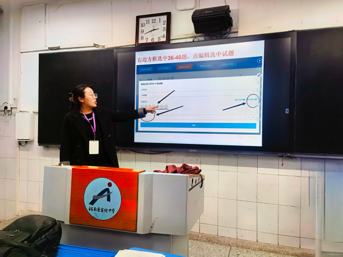 之后,文博高二英语备课组长李俊玲老师对付晓晨老师的分享做了点评。她表示,新课标明确指出,“完整的教学活动包括教、学、评三个方面,要处理好三者的关系,达到以评促教、以评促学的目的。”门口易测极大地提升了阅卷效率和准确率,能将测评结果更快更准确地反馈给师生。通过系统对各题得分率的统计,老师能够快捷直击试卷中学生答题的薄弱环节,评卷效率更高、更有针对性。通过历次周测和作业的成绩跟踪统计,学生也能看到自己英语学科的学习成长历程。此外,她还强调了老师们通力合作的重要性,针对教学和工作中遇到的问题,教师间要互相支持、互相学习、共同进步,以积极开放的心态投入到工作中,努力让自己成为具有反思意识和创新能力的英语教师。