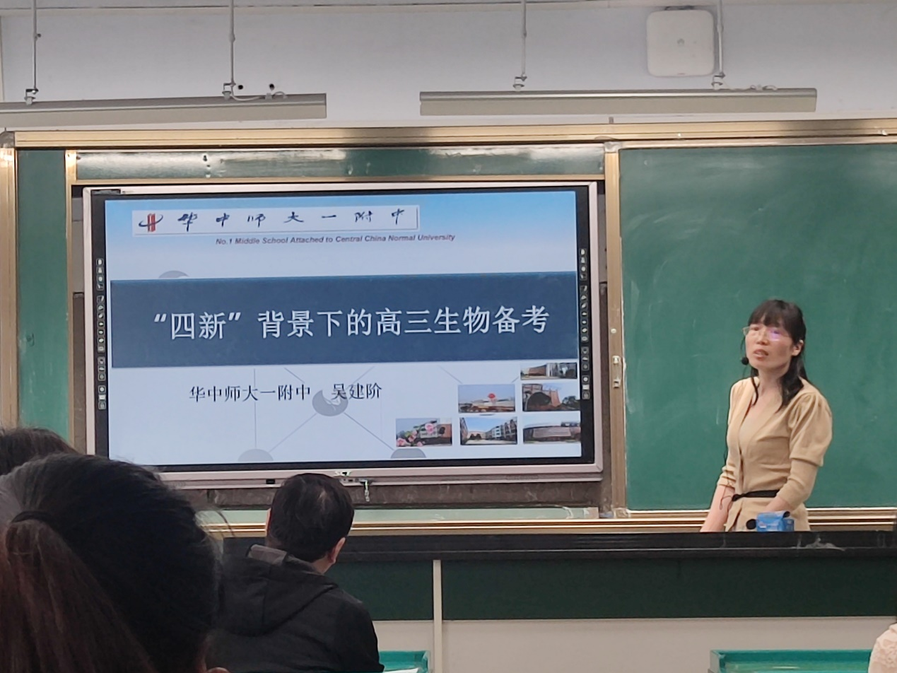 其次,王老师传达了华中师大一附中吴建阶老师关于《“四新”背景下的高三生物备考》的指导建议。吴老师强调,新高考模式下,教师要以《中国高考评价体系》为考试指南,要特别关注新教材增加、调整的内容。吴老师还用“无价值,不入题;无思维,不命题;无情境,不成题”高度概括了高考评价体系指导下的高考命题典型特征,强调新高考的三点转变,由“考知识”向“考能力”转变,由“简单情景”到“复杂情景”转变,由“以纲定考”到“考教衔接”转变。