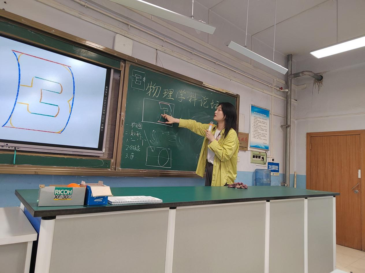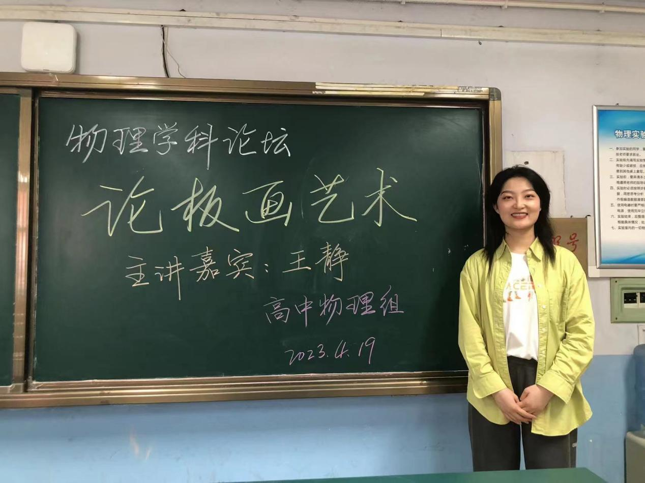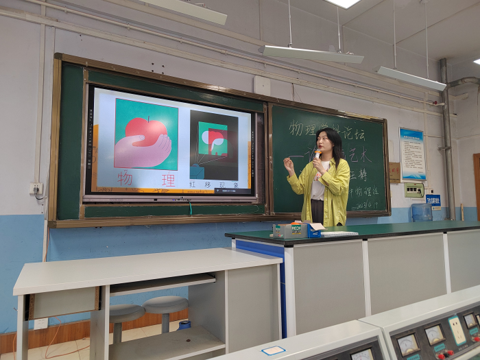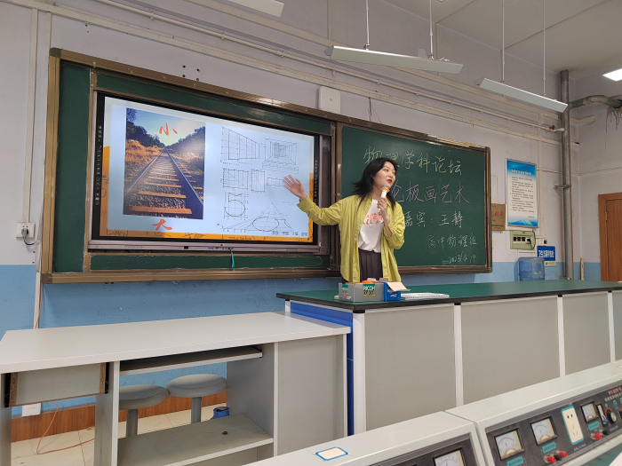 2023年4月19日下午,我校高中物理组全体教师在实验楼三楼参加了<<论板画艺术>>的小论坛,物理组教研组长杨福合老师特邀美术组王静老师作为主讲嘉宾.