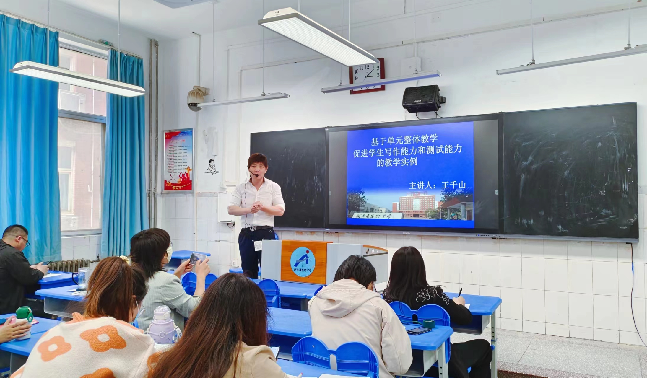 “师指一条路,烛照万里程”。王千山老师既有理论高度,又具实践基础的培训。他提出的逆向设计(教学目标)和单元(教材)整体教学可操作性强,通过积极构建写作知识和技能体系,切实可行地提高了学生的写作能力。不但为教师指明了写作教学的路径,更为我们提供了切实有效的利用课本(课堂)培养写作能力教学方法。他的讲解深入浅出,条理清晰,理论与实践相结合,对新课标下的写作教学提出了切实可行的指导意见,为老师们的课堂教学带来了思考和启发,尤其是展示的学生作文令老师们印象深刻。