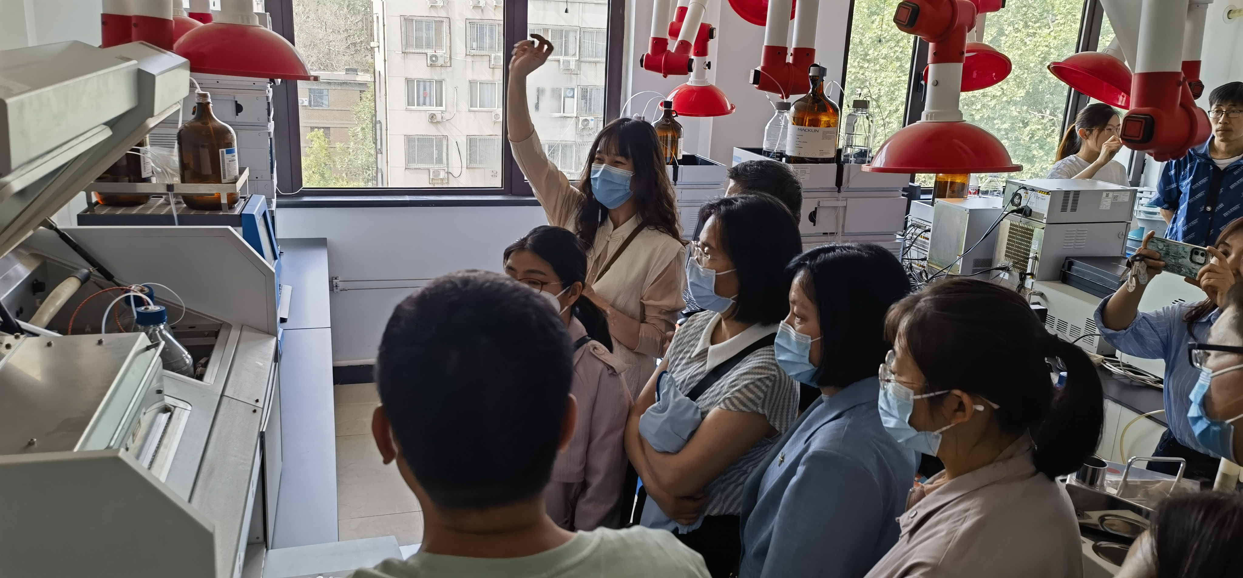 在化学所科研人员的带领下,我校高中化学老师一行参观了化学实验室、科普中心、大型仪器共享平台,了解了化学所有限公司的发展历程、人才团队、科研方向、科研成果和成果转化以及重建重振河南省科学院相关情况。特别是针对新教材中提到很多新的化学技术手段,老师们只是在教材中读到,今天真正的接触到红外光谱仪、紫外光谱仪、液相色谱仪、气相色谱仪、比表面积仪、热重分析仪、纳米颗粒测试仪等等,很多设备只是在书本和试题中听到过,高中根本没有见过。在科研人员细心讲解,大家认真倾听,不断提出问题,甚至针对教材中或高考模拟题中的问题,通过科研人员实操测试,加深了对知识的了解。参观了有机磷实验室,了解紫杉醇抗癌药物的研发。
