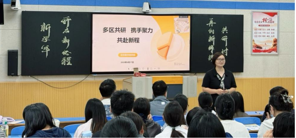 金秋送爽启新程,教学研讨正当时。新学年伊始,为进一步落实教研工作目标和教研组的工作安排,增进教师之间的交流,提高教师专业素质,展示新进教师风采。9月17日,我校各校区全体初中数学教师齐聚文化路本部校区,召开新学期第一次教研活动。本次活动由数学教研组长张星艳老师主持。