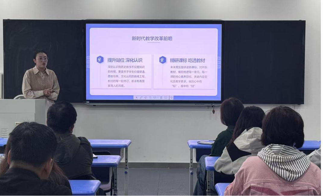 秋阳澄澈,学意正浓。2025年9月22日下午,一场凝聚智慧、启迪思维的历史教研成果分享会在河南省实验中学历史教室温暖启幕。我校高瑾老师作为代表,将在河南省初中历史统编版新教材培训会中的深度学习与思考,转化为一场精彩纷呈的汇报,与全校历史教研组同仁共研新教材,共话新教学。