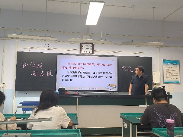 在新学期教学规划环节,陈俊伟老师先是展示了本学期需要参与的高考质量分析会、非毕业年级教学研讨会等会议的开会时间和与会人员。接着鼓励大家参加本学期举行的教研共同体主题教研活动和学校组织的优质课比赛。最后,提醒全体教师本学期的教学进度安排、各年级考试时间与考试范围。