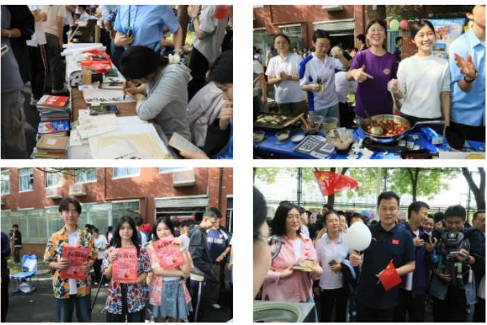连日的阴雨消散,秋日的阳光无比明媚。午后的篮球场四周,早已变成一片五彩斑斓的“创意海洋”。映衬着“红旗大道”飘扬的鲜艳国旗,同学们以班级为单位,搭起五大主题摊位,烘焙小食的甜香、创意手工艺的巧思、科技创新的奇趣、互动游戏的欢笑,汇成一曲热闹非凡的青春交响乐。