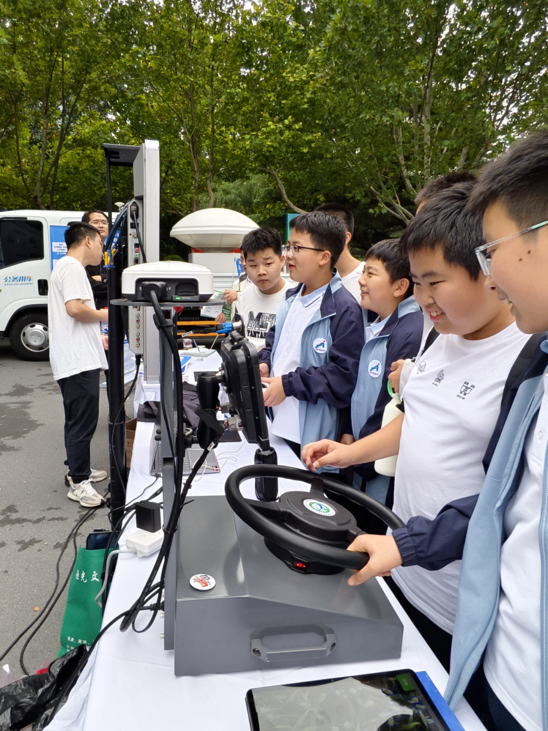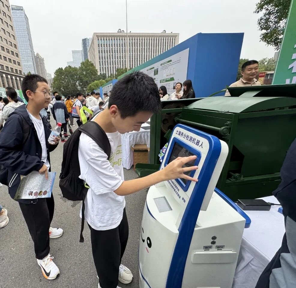 在“智慧农业”展区,两台“黑科技”设备让同学们直呼“农业原来可以这么智能”。一台“土壤养分检测机器人”外形小巧可爱,屏幕上实时显示着土壤的湿度、氮磷钾含量等数据,同学们好奇地用手指触摸屏幕,仿佛在与农业未来对话;除此外,一架多旋翼无人机和一架固定翼无人机格外吸睛,它们是农田里的“空中卫士”,能完成植保、巡检、数据采集等多项任务,让农业生产效率大幅提升。从能精准“诊断”土壤的机器人,到翱翔天际的农业无人机,同学们真切感受到智慧农业正以科技为笔,在中原大地上绘制出“高效、精准、智能”的现代农业新画卷。