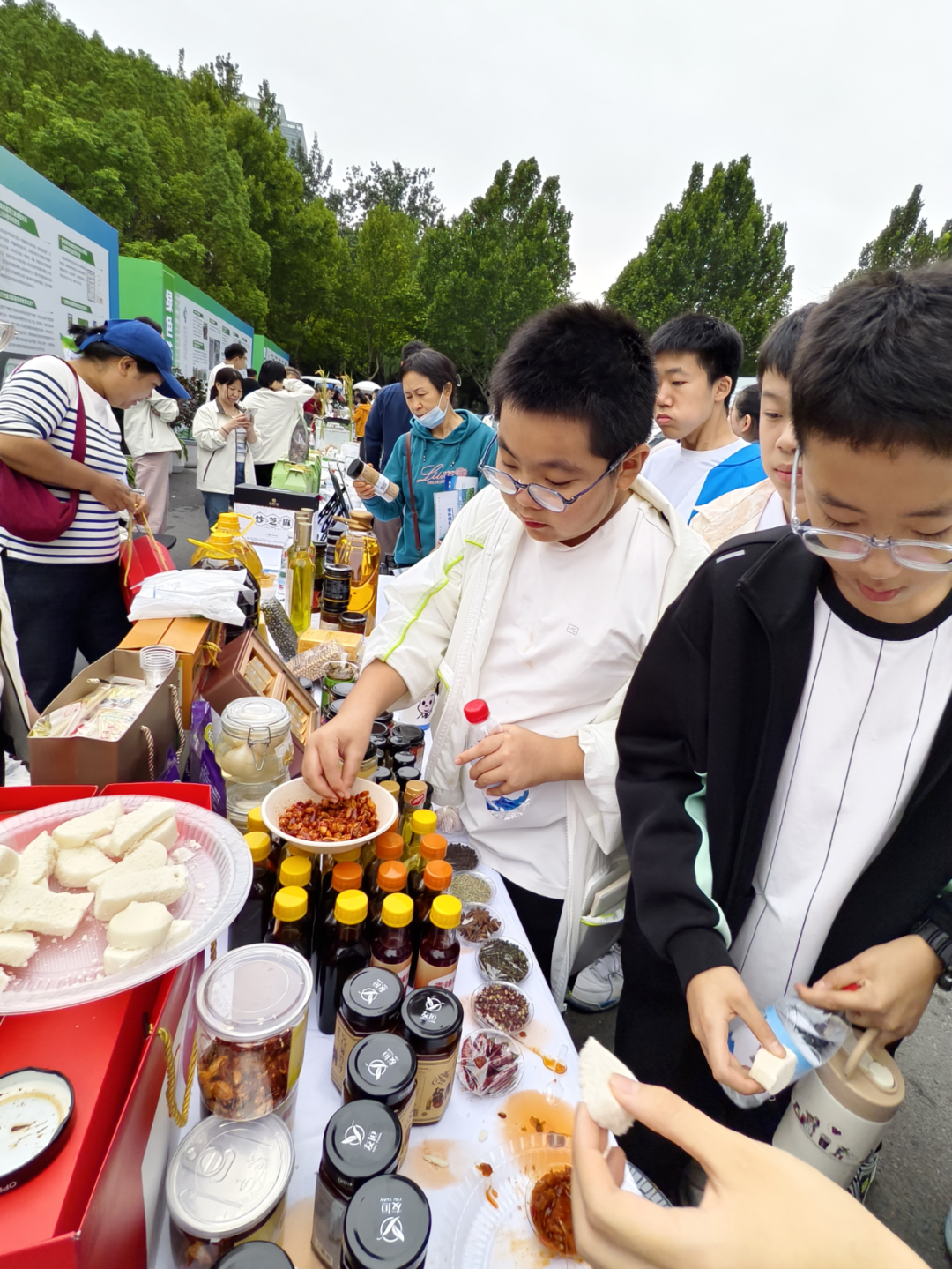 此外,“林果花卉”“精深加工”“食品安全”“绿色防控”等展区也各具特色。在“林果花卉”展区,同学们了解到通过嫁接技术培育出的果树能同时结出多种果实;在“精深加工”展区,看到小麦被加工成面粉、面条、饼干等多种产品,还能提取出淀粉、谷朊粉等工业原料;在“食品安全”展区,学习了如何通过检测设备辨别食品中的农药残留;在“绿色防控”展区,认识了以虫治虫的“生物防治”方法,明白了“不打农药也能种好庄稼”的科学原理。