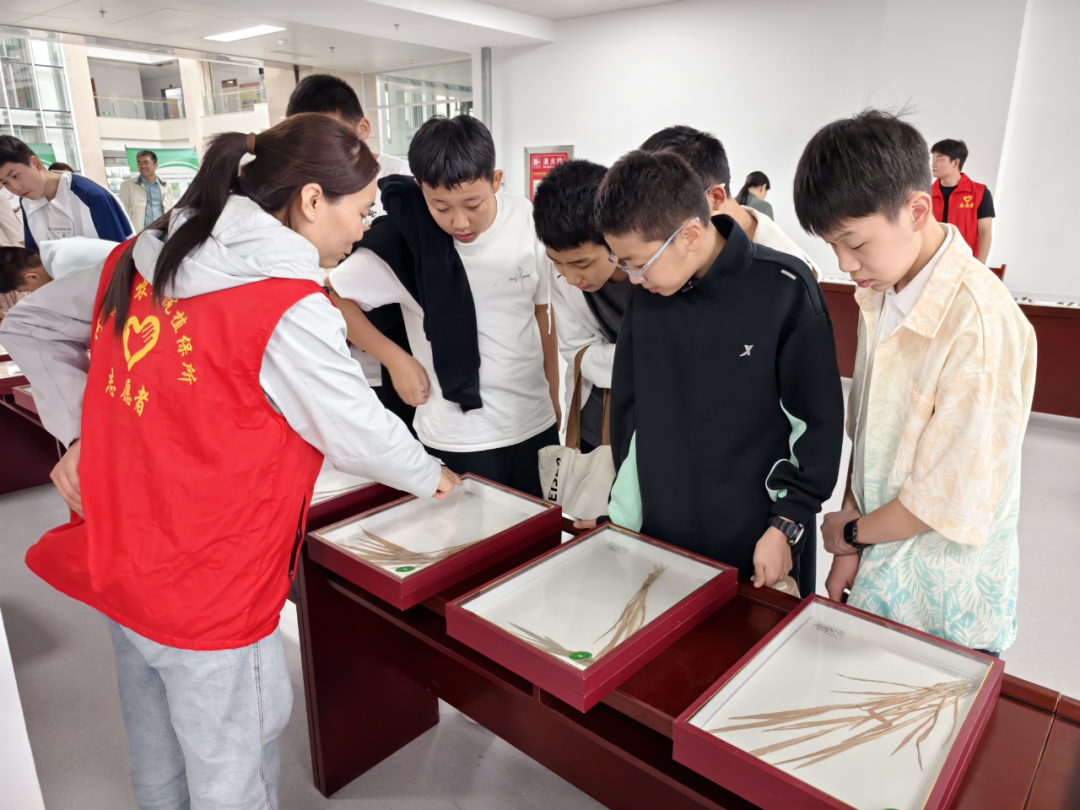 在展厅另一侧的植物标本展区,更是上演了一场“视觉对比课”。玻璃展柜中,病变小麦与未病变小麦被并列摆放:左边的病变小麦穗粒干瘪、叶片枯黄,表面还附着灰褐色的病斑;右边的健康小麦则穗大粒满、茎秆挺拔。“这就是小麦锈病的危害吗?”“科学家是怎么培育出抗病小麦的?”面对同学们一连串的提问,农科院的科研人员耐心解答,用通俗的语言讲解植物病害的识别方法与防控原理,让大家直观感受到“守护粮食安全”不仅是一句口号,更是科研人员日复一日的细致攻关。