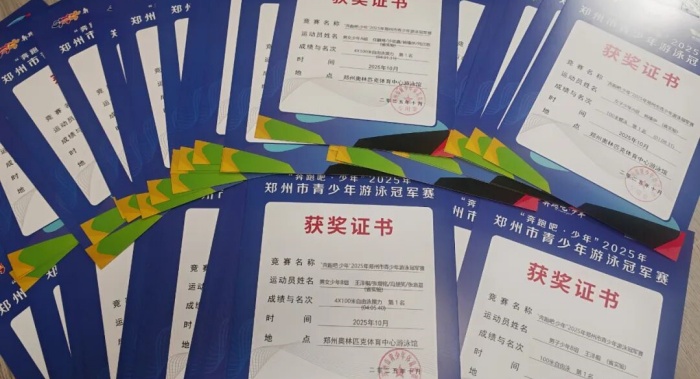 10月2日,正值全国上下欢度国庆的喜庆节日,从郑州市奥体中心游泳馆传来喜讯,我校代表队在“奔跑吧,少年”2025郑州市青少年游泳冠军赛中勇夺团体总分和金牌榜两个第一名,以优异的成绩为国庆节献礼。