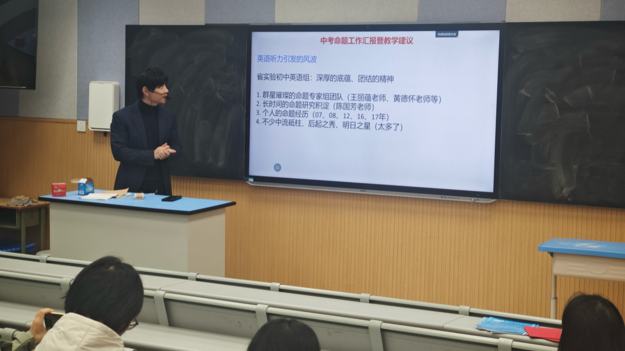 他以阅读理解与书面表达为例,详细解析了命题过程中如何平衡“基础性”“综合性”与“开放性”,如何选取贴近学生生活、具有教育意义的语篇素材。王老师强调,“命题不是知识的简单复现,而是能力的多维映射。”他建议教师在平时教学中加强对学生逻辑思维、信息整合与批判性阅读能力的训练,真正做到“以命题引导教学,以教学呼应命题”。