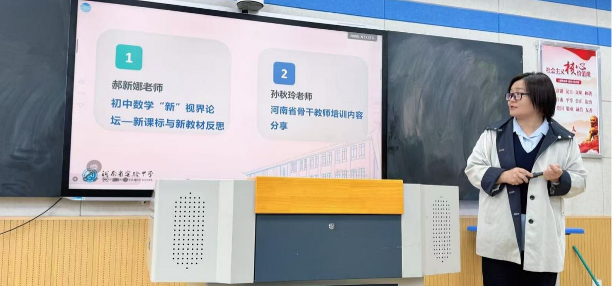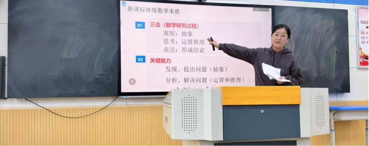 2025 年 10 月 22 日下午,我校初中数学组于本部教学楼阶二教室开展主题教研活动。本次活动围绕 “新课标落地实践与 AI 赋能数学教学” 展开,由数学组长张星艳老师主持,教研组全体教师参与,重点听取郝新娜老师 “新课标与新教材反思” 专题分享及孙秋玲老师 “外出学习之 AI 助力课堂提质增效” 经验交流,旨在进一步明晰新课标要求、探索教学创新路径。