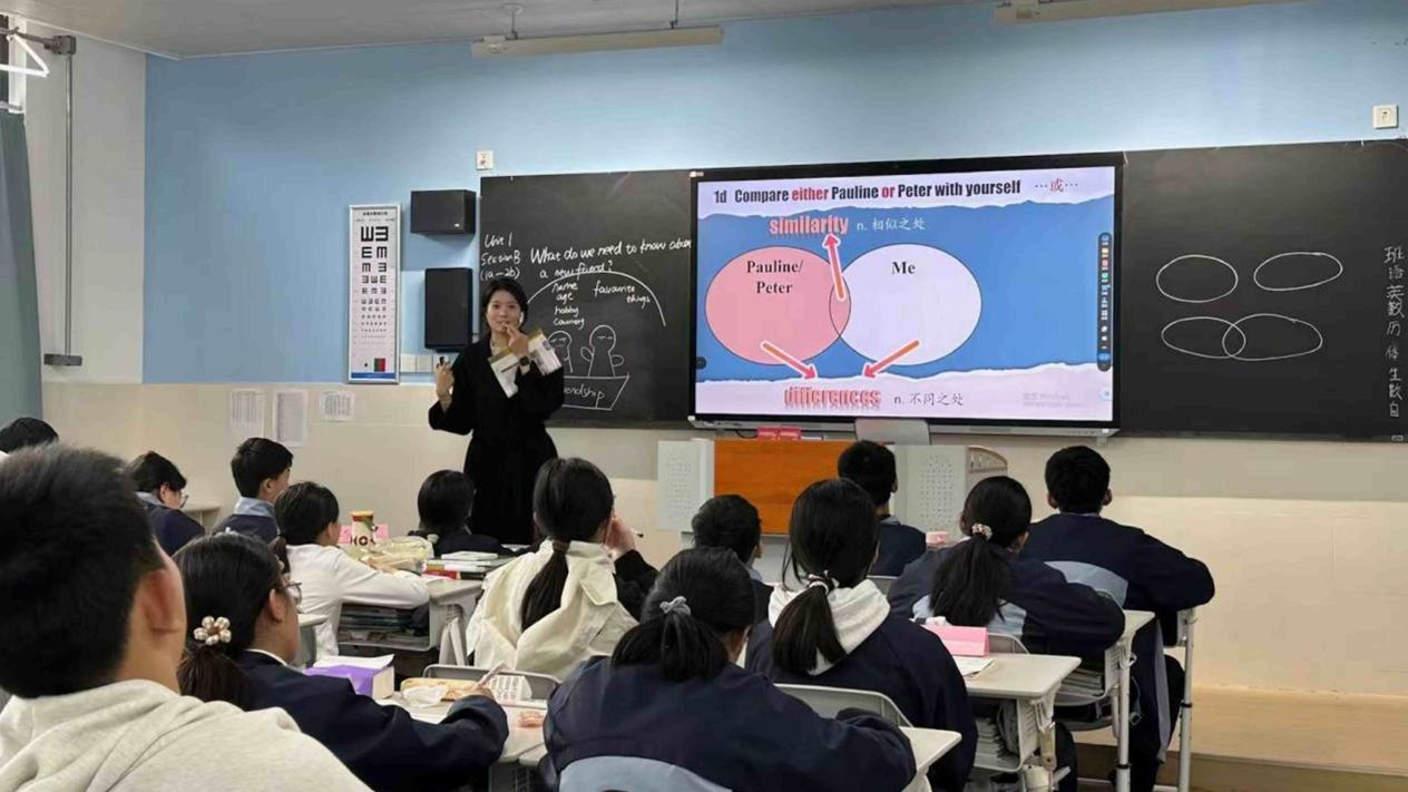 在阅读环节中,校老师设计了层次分明的任务链:从信息匹配到表格填写,再到维恩图对比分析,引导学生逐步深入文本,学会从“相同”与“不同”两个维度审视自我与他人。学生们在对比中发现了文化的多样性,也在表达中增强了自我认知与认同。