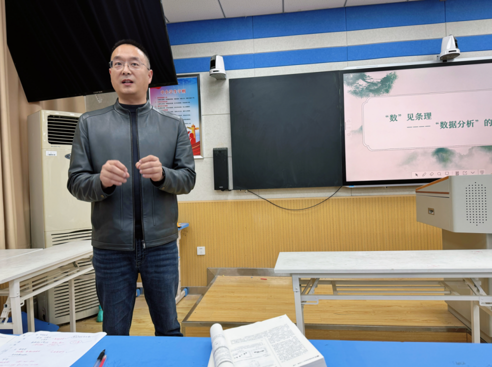 为深化教师对新教材“数据分析”教学的理解,落实新课标核心素养要求,2025年10月29日下午,我校初中数学组在本部阶梯教室召开“数”见条理——“数据分析”的成套美学专题论坛。论坛由潘婧祎老师主讲,全体初中数学教师参会,教研组长张星艳老师主持,孙军伟老师参与点评。
