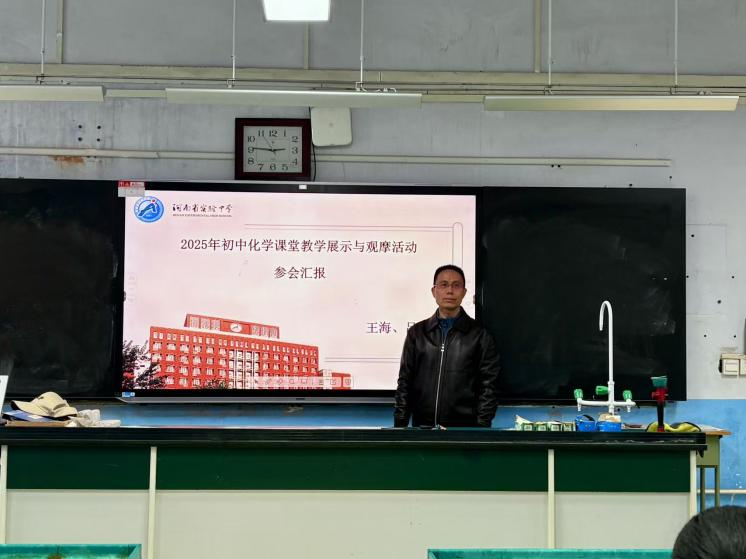 为深入推进“素养导向的课堂教学创新”实践探索,落实学科核心素养培育目标,2025年10月29日,我校初中化学教研组开展了以“2025年初中化学课堂教学展示与观摩活动汇报”为主题的教研分享与研讨活动。初中化学组全体教师参与此次活动,由王海老师作初中化学课堂教学展示活动的专题汇报。
